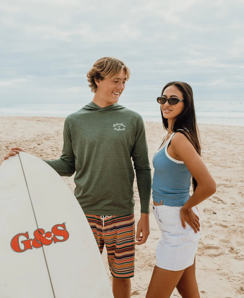 Our hooded Rashie is just want you need to protect your scone from the blazing sun. Easy to just pull it up and over or let it rest behind you as it's stitched on. Poly / spandex mix with a soft hand feel. These Rashies are 50+ UPF and will protect from the sun on the hottest of days. Quick drying and perfect in the Surf. Great UPF Sun protection, with a 50+ UPF rating.